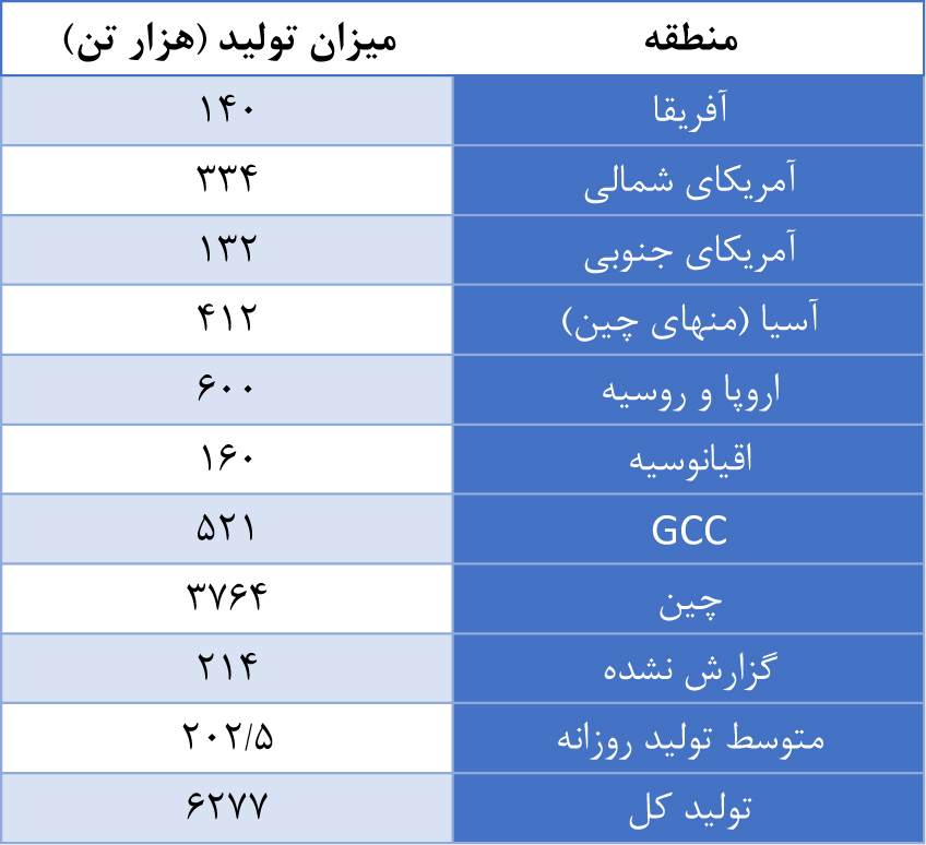 جدول میزان تولید آلومینیوم در سطح جهان طی ماه آگوست به قرار ذیل است: